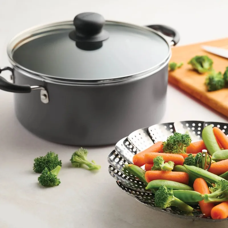 Heat and shatter-resistant tempered glass lids allow easy monitoring of cooking progress
