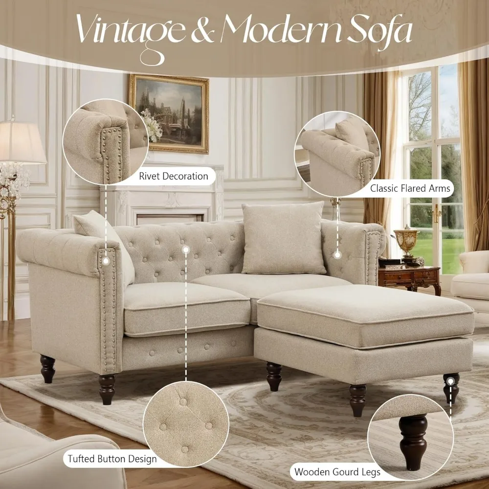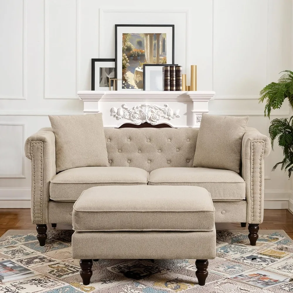 - Chesterfield Sofa: Designed in classic chesterfield style, This loveseat sofa is equipped with deep button tufting, nailhead trim, flared arms and gourd wooden legs, exuding a sense of noble elegance. This 2 seater sofa is a classic and modern sofa that perfectly matches any decorative theme for your living room or bedroom