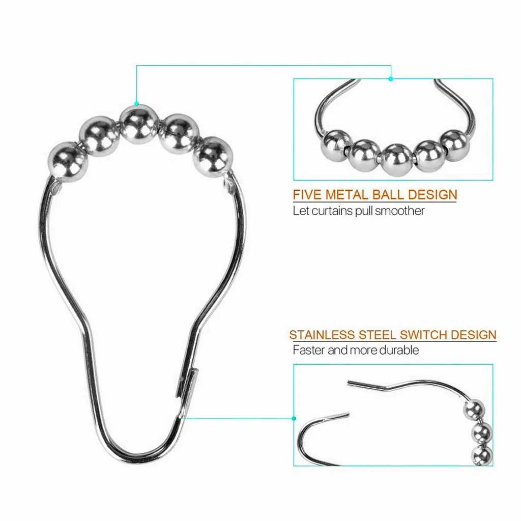 Shower Curtain Hooks Rings Rust-Resistant Shower Curtain Rings Hooks 12Pcs